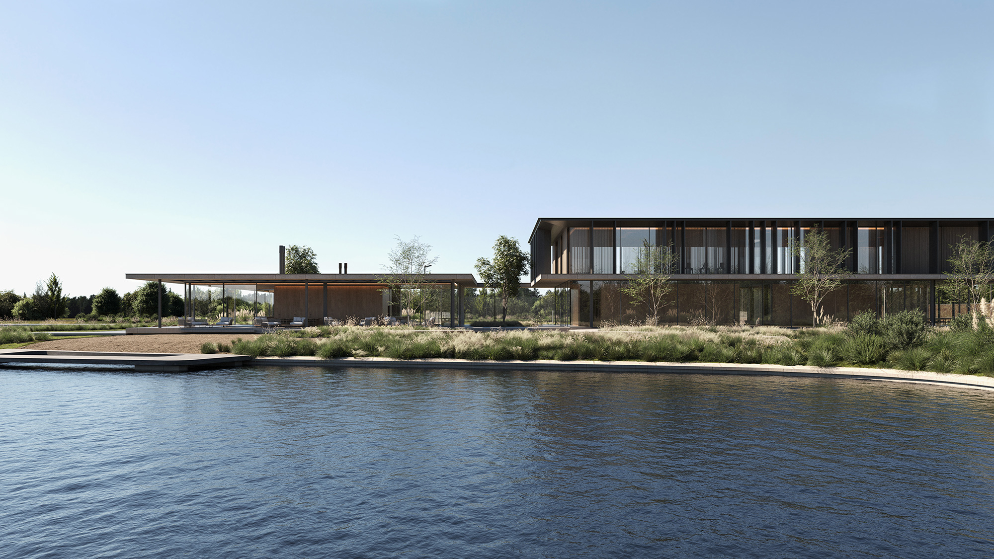 El edificio principal, ubicado estratégicamente para convertirse en una pieza icónica visible tanto desde el acceso como desde el lago central, vincula actividades sociales, recreativas y deportivas. su volumetría, resuelta en forma de “L” y orientada para maximizar las visuales hacia el lago, favorece las circulaciones entre las distintas zonas y optimiza el asoleamiento de los espacios.